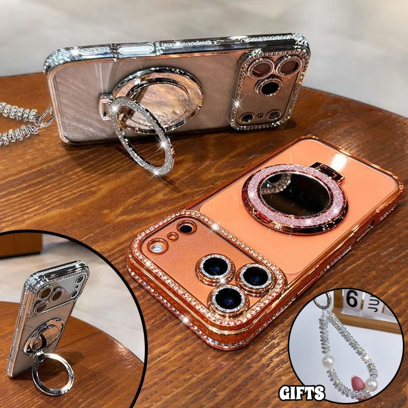 ✨💎Sparkling Diamond Women's Phone Case with Mirror & Stand for iPhone 12/13/14/15/16/17 Pro Max,17Air,14/15/16 Plus💖